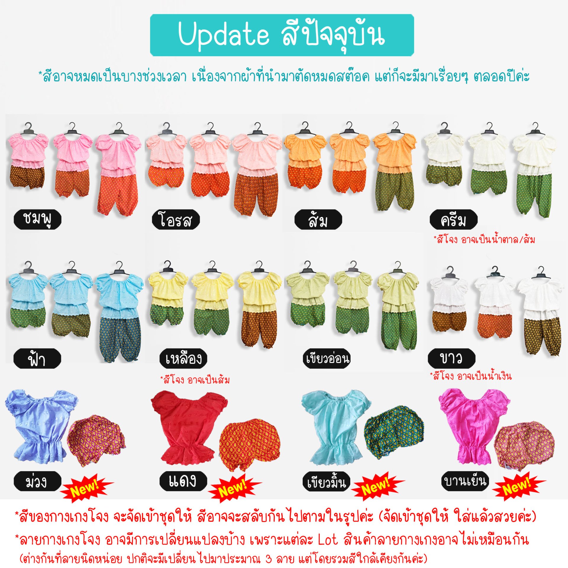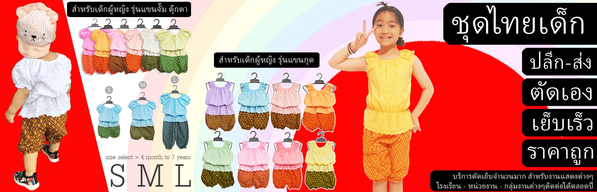 สินค้าชุดไทยเด็กประยุกต์ ใส่ง่าย ใส่สบาย ไม่คัน ซักได้ ราคาประหยัด งานสั่งตัดเองจากร้าน มีคุณภาพสมราคา ใส่ได้หลายงาน สั่งตัดและจำหน่ายมานานกว่า 10 ปี เป็นงานตัดเย็บทำมือ+จักรเย็บผ้าจากแรงงานในชุมชนตัดเย็บค่ะ งานอาจไม่เนี๊ยบ 100% แต่รับรองว่า สามารถใช้งานได้ ใส่สวย สบาย โดยมุ้งเน้นราคาประหยัดที่สุดเลยค่ะ