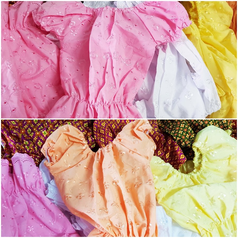 เสื้อไทย เด็กผู้หญิง รุ่นแขนตุ๊กตา แขนจั๊ม สวยน่ารักใส่ง่าย ใส่สบาย ไม่คัน ซักได้