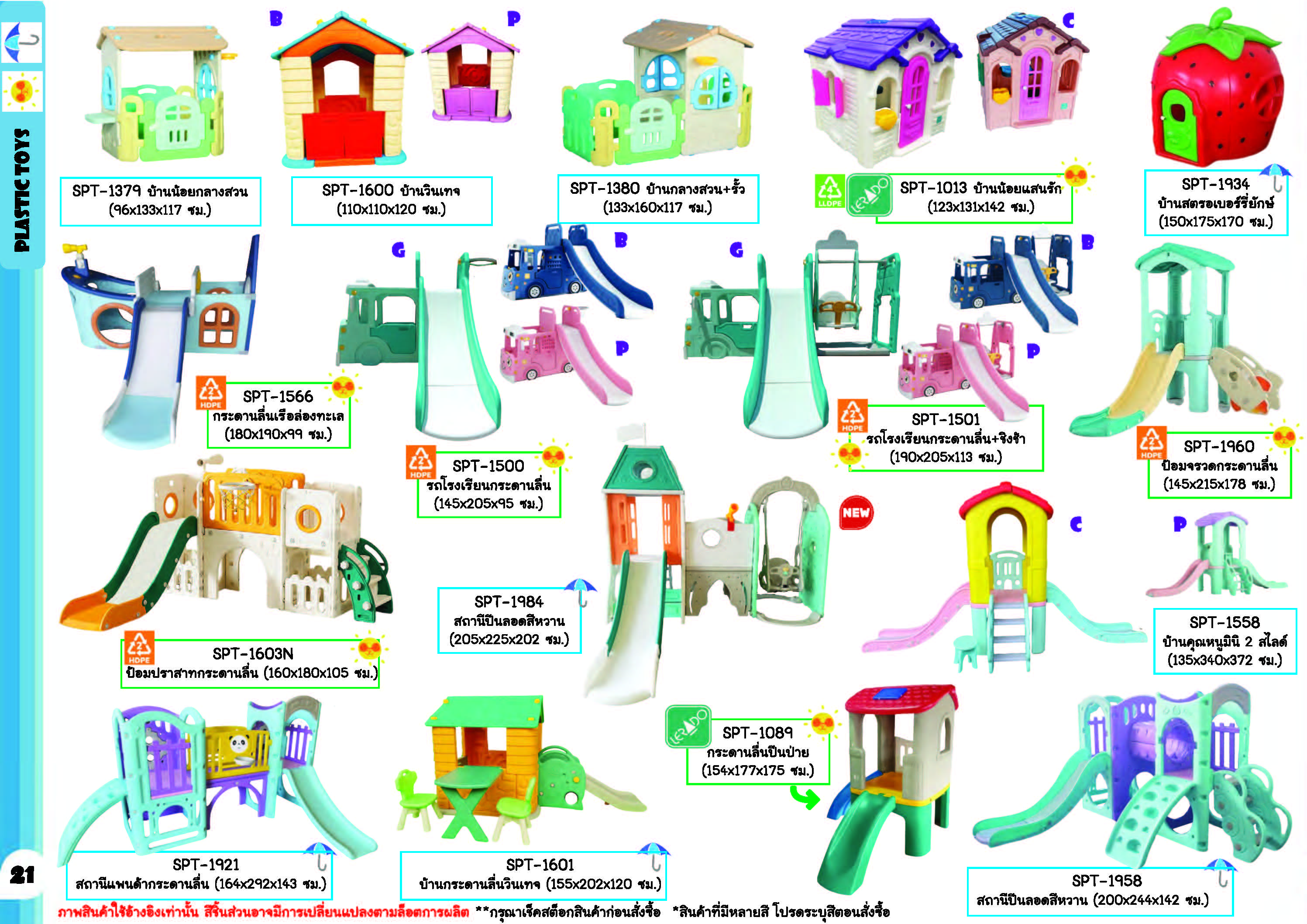 ชุดสไลเดอร์ + ชุดบ้าน ขนาดใหญ่ปานกลาง (ครบจบในชุดเดียว) เป็นของเล่นยอดนิยมที่มีตามสถานเด็กเล่นต่างๆ เช่นโรงเรียน โรงแรม สนามเด็กเล่นต่างๆ เพื่อให้นำไปใช้ในบ้านได้ หรือสนามหลังบ้านได้ มีหลายแบบ หลายยี่ห้อ ราคาย่อมเยาว์ มีคุณภาพดีมากค่ะ
