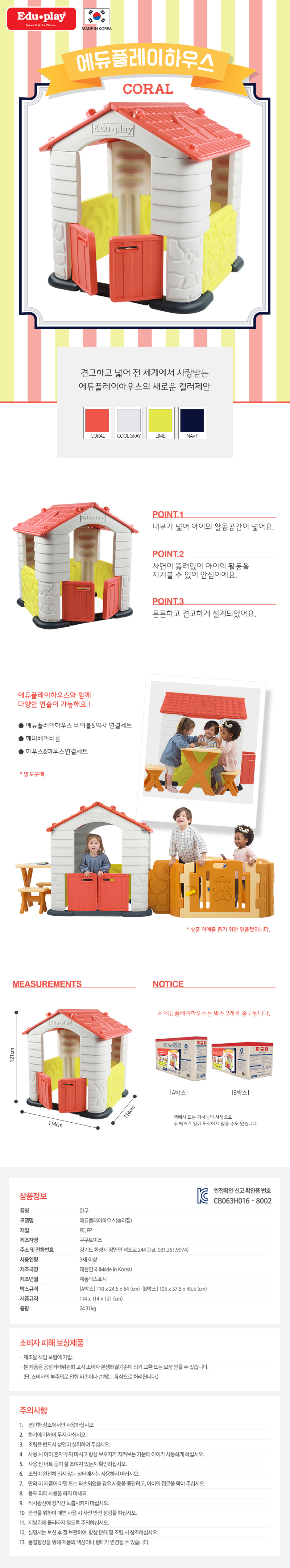 บ้านเด็ก EDU.PLAY จากเกาหลี ปีนี้ ออกสีใหม่เพิ่มมา สวยมากค่ะ เป็น 에듀플레이하우스(코랄) EDUPLAY HOUSE สี CORAL หรือสีออกแนวส้มพีช หวานๆค่ะ ตัวบ้านก็จะผสมสีมาเป็นส้มพีช ขาวครีมและเหลืองอ่อนๆ ดูกลมกลืนดีค่ะ