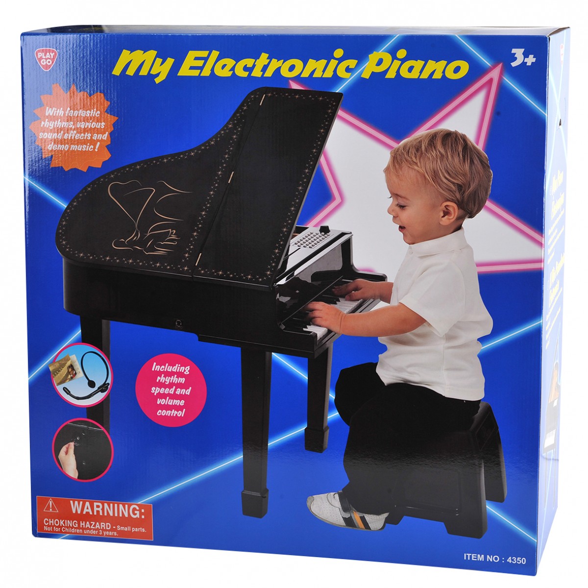 ของเล่นเด็ก ของเล่นเสริมพัฒนาการ My Electronic Piano ชุดแกรนด์เปียโน พร้อม เก้าอี้ สามารถเล่นได้เหมือนเปียโน หลังใหญ่ มีไมค์ร้องเพลง ลักษณะเด่นคือขนาดของแป้นคีย์ เหมาะสมกับขนาดของนิ้วของเด็ก ใช้ถ่านเพื่อให้ของเล่นสามารถทำงานได้ เปียโนอิเล็คทรอนิกส์มีคุณสมบัติหลากหลาย สามารถปรับระดับเสียงและปุ่มกดตัวโน๊ตเหมือนเด็กได้เล่นเปียโนจริง และสามารถบันทึกเสียงการแสดง เสมือนอยู่ในคอนเสิร์ตจริง