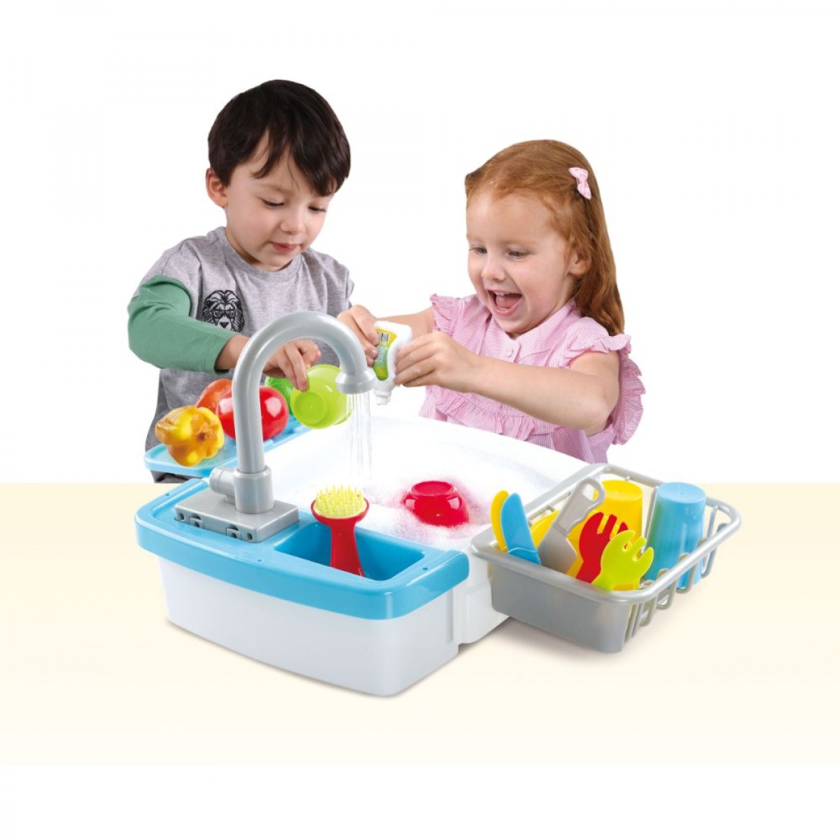 PLAYGOซิงค์ล้างผลไม้ ชุดของเล่นเด็กจากแบรนด์ PLAYGOซิงค์ล้างผลไม้ สอนให้เด็กๆสนุกสนาน การเรียนรู้ทำความสะอาดอนามัยในครอบครัวเบื้องต้น ให้น้องๆเปิดน้ำล้างจานสิ่งของ ได้จริง โดยน้ำจะไหลออกจากก็อกนำ ไหลลงซิงค์เหมือนจริง และน้ำเปิดก๊อกไหลวนกลับมาได้