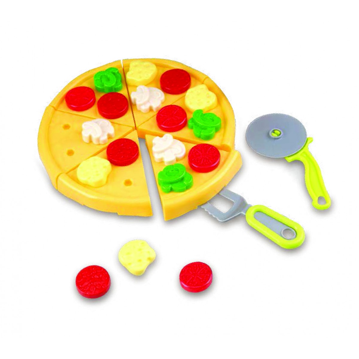 พิซซ่าถาดร้อนพร้อมเสิร์ฟแล้ว!!! พิซซ่าสมมุติสำหรับคุณหนูๆยอกนักตกแต่ง โรยหน้าแล้วหั่นแบ่งตามจำนวนของเพื่อร่วมโต๊ะ พิซซ่านี้ปะกอบด้วยหน้าที่หลากหลายทั้งชีส ผักและเนื้อ
