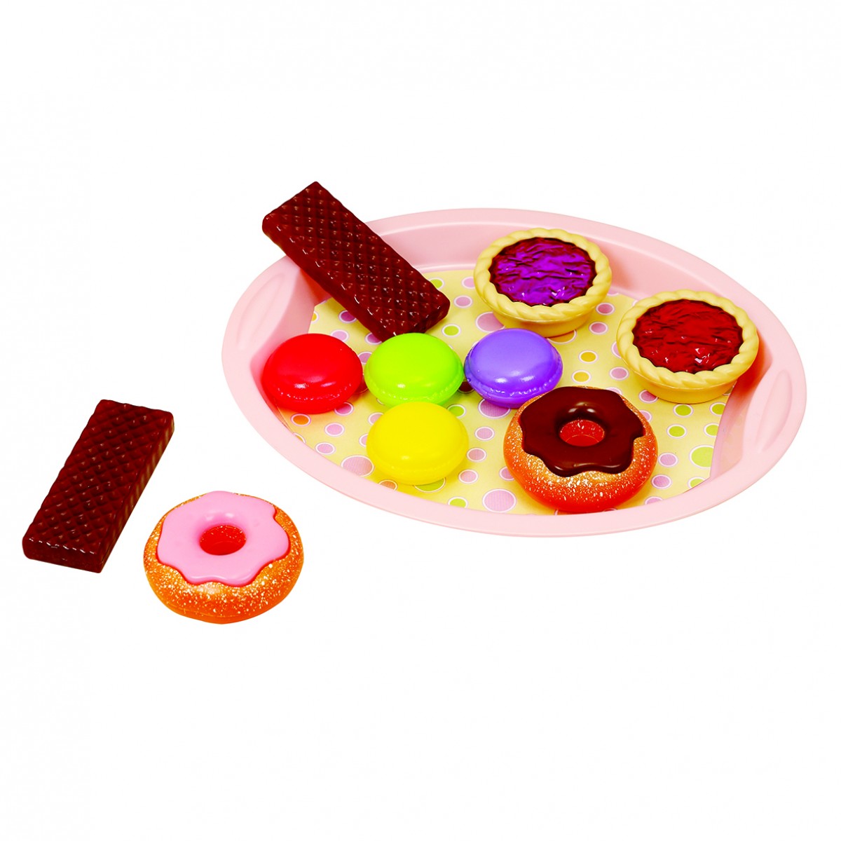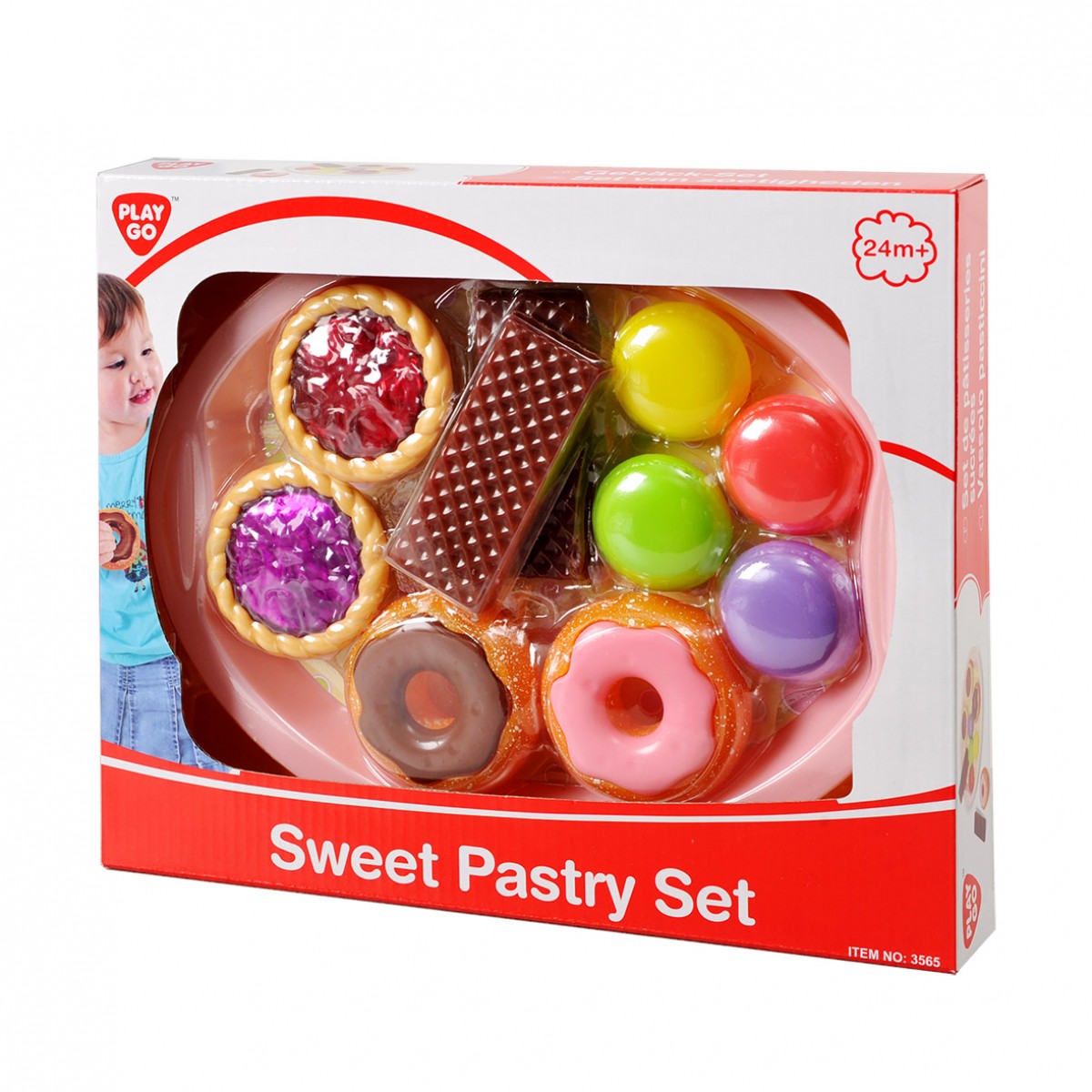 ถาดขนมหวานเบเกอรรี่ ภายในประกอบด้วย มาการอง บิสกิตแยม ช็อกโกแล็ต โดนัท และอื่นๆ มาในถาดขนมหวานสีสันสดใส ช่วยให้น้องๆได้เล่นกับขนมต่างๆมากมาย โดยไม่เปรอะเปื้อน