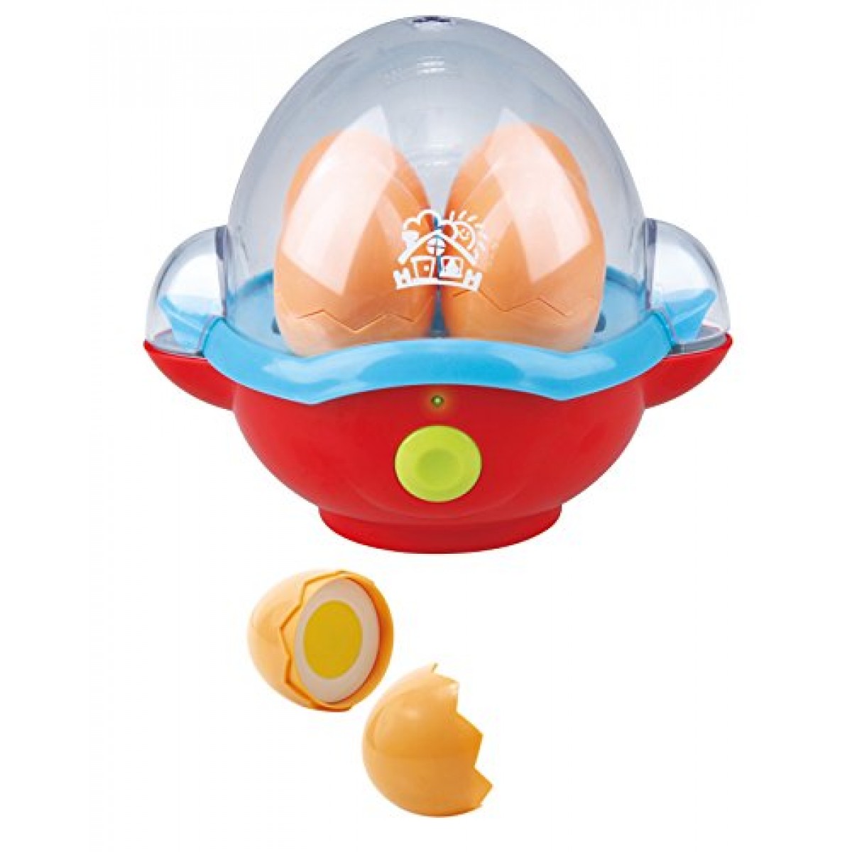 เพียงวางของเล่นไข่ 4 อันที่รวมอยู่ในหม้อหุงไข่และปิดฝาโปร่งใส เพียงกดปุ่มไฟแสดงสถานะจะสว่างขึ้นและคุณจะได้ยินเสียงการปรุงอาหารที่แท้จริง ทันทีที่เสียงเตือนดังขึ้นก็ถึงเวลาที่ต้องทำให้เสร็จ!