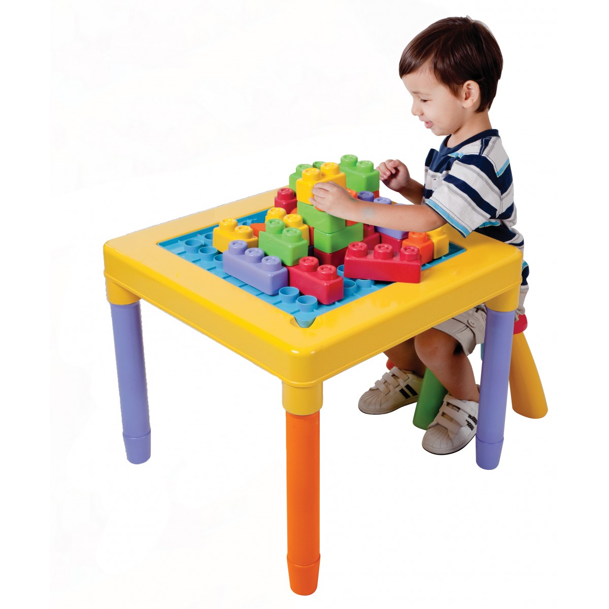 นอกจากนี้ยังสามารถเปลี่ยนเป็นโต๊ะ สำหรับทำการบ้าน และ รับประทานอาหาร ได้ด้วย สำหรับชุดโต๊ะเก้าอี้พร้อมตัวต่อบล็อก ประกอบด้วย โต๊ะ 1 ตัว เก้าอี้ 1ตัว พร้อมบล็อกแถม