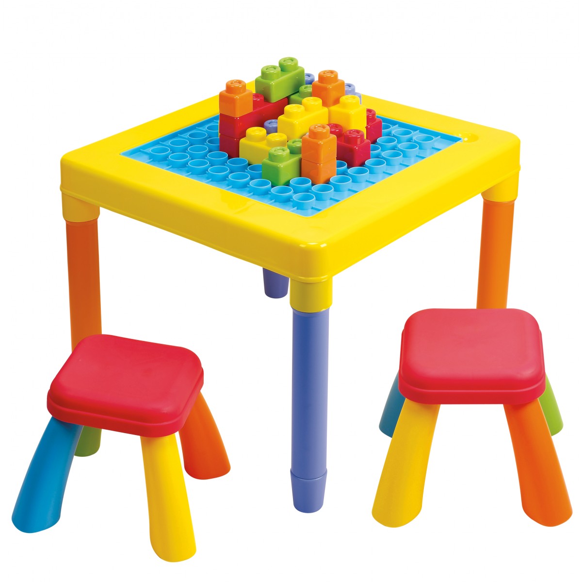 ชุดโต๊ะเก้าอี้พร้อมตัวต่อบล็อก ประกอบง่าย สะดวกต่อการพกพา สีสันสดใส พลาสติกคงทนแข็งแรง ผลิตจากพลาสติก เกรด A ใช้สี Non-Toxic ซึ่งไม่เป็นอันตรายต่อเด็ก